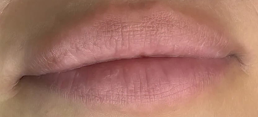 Exfoliation begins with very chapped lips. The color will become lighter as the epidermis sloughs off. It will appear that lips have lost all of their color during this phase of healing; Be patient. This is a process that does not yield immediate results.